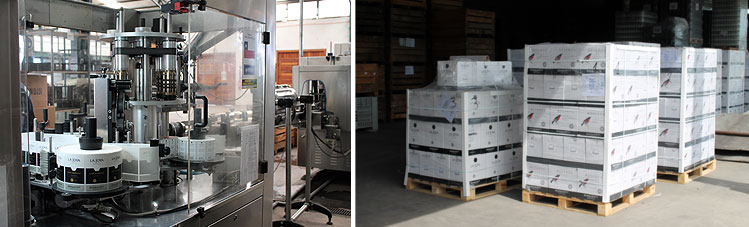 - Encajonado de botellas: El encajonado de botellas es en cajas de cartón estandar de 6 o 12 botellas.
